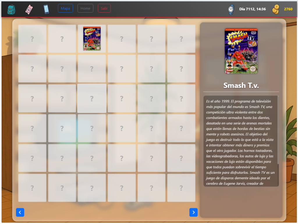 Está lista la pantalla de Home! Un fondo de pantalla estilo anime con una habitación y el grid con los juegos. Seleccionando uno la información sale a la derecha. Suficiente, según avancemos haré retoques y hay que añadir algunas cosas más.